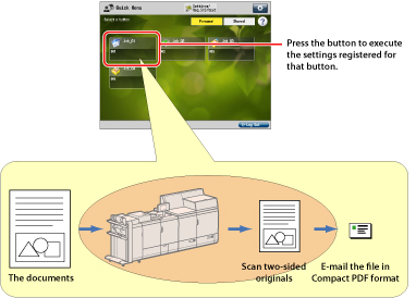 For example, you can scan two-sided originals and e-mail the file to the recipient in the Compact PDF format by pressing a single button.