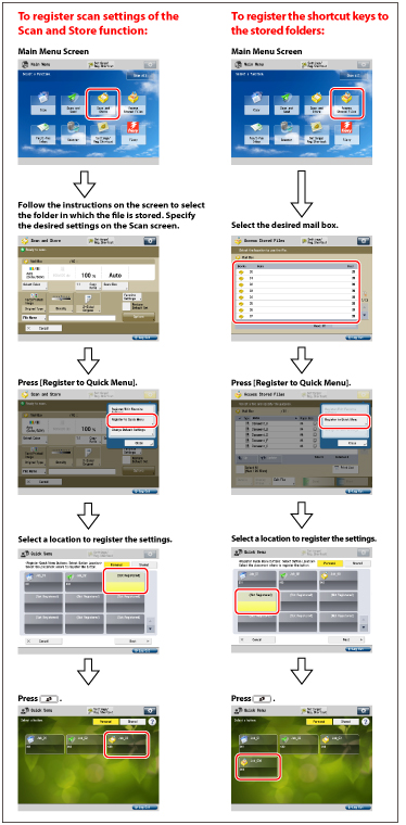 (See "Scan and Store.")The flow of registering settings in Personal buttons/Shared buttons is indicated below.