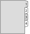 You can use tab paper set in the Document Insertion Unit-N1 for Add Cover, Insert Sheets or Job Separator. If you want to insert printed tab paper as a chapter pages, insert a blank paper where the tab paper will be inserted. |
