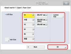 Select the same paper size that is loaded in the Document Insertion Unit-N1. |