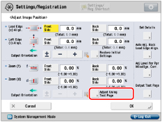 Depending on the paper type, the heat generated by the fixing unit may cause the paper to expand or shrink slightly. In this case, images may also be enlarged or reduced accordingly. This function enables you to set the zoom ratio of the image for each paper, or enlarge the reduced image to match the zoom ratio of the image on the second side of the paper. You can adjust the zoom ratio of the image either by entering the enlargement/reduction ratio, or by entering the value of the test page you measured manually.