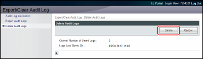 Click [Settings/Registration] → [Device Management] → [Export/Clear Audit Log] → [Audit Log Information].