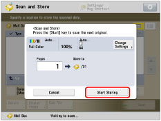 You can scan and store up to 999 pages at one time. If two-sided originals are scanned using the feeder, you can store up to 1,000 pages. Once the maximum number of originals you can scan is reached, a message asking whether to store appears. |