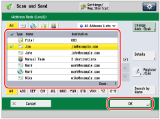 Press  → [Scan and Send] → [Address Book].