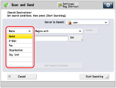 To cancel searching while the machine is searching, press [Cancel]. If the machine finds results before you press [Cancel], those search results are displayed.