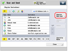 If you press [Register E-Mail as I-Fax], the key lights to show that this setting is turned on, and the selected e-mail address can be registered as an I-fax destination. To register e-mail addresses as I-fax addresses, register one e-mail address at a time.
