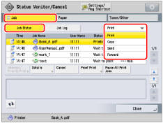 You cannot select multiple jobs and cancel them all at once. Select and cancel one job at a time. |