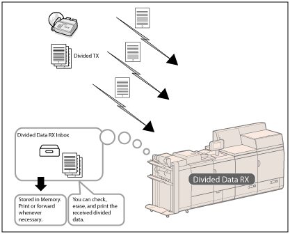 1 | [Divided Data List] Press to check the status of divided data, and the remaining capacity of the Divided Data RX Inbox. |