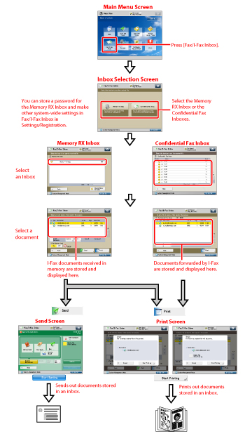 You cannot store any more files in the Fax/I-Fax Inbox in the cases described below. These numbers may vary depending on the remaining capacity of the hard disk. When a total of 1,500 files or images are stored in the Mail Box and Fax/I-Fax Inbox When a total of 6,000 pages of files or images are stored in the Mail Box and Fax/I-Fax Inbox When there is insufficient memory available |