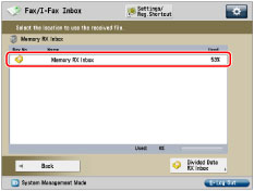 → [Fax/I-Fax Inbox] → [Memory RX Inbox].