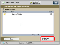 → [Fax/I-Fax Inbox] → [Memory RX Inbox].