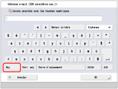 .[Oui] : | Si l'on appuie sur la touche [Maj] du clavier, les lettres saisies sont en majuscule jusqu'à ce que l'on appuie une nouvelle fois sur la touche [Maj]. |