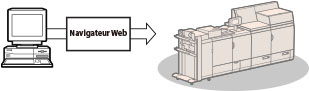 Depuis le navigateur Web de l'ordinateur, il est possible de contrôler des fonctions, par exemple vérifier le statut de la machine, le déroulement des tâches et les instructions d'impression des données lues et enregistrées.