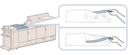 . La machine entraîne automatiquement les originaux sur la vitre d'exposition et les lit. Les originaux recto verso peuvent également être lus en tant que documents recto verso.IMPORTANT |