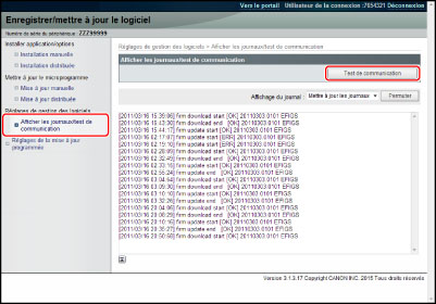 Appuyer sur [Réglages de gestion des logiciels] → [Tester la communication].
