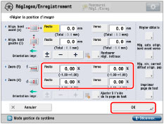 Définir le taux d'agrandissement/de réduction (%) pour <Zoom (f)> et <Zoom (d)> sous <Régler la position d'image> → appuyer sur [OK].
