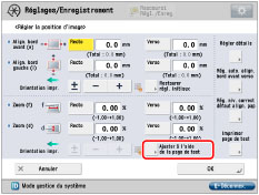 Revenir à l'écran <Régler la position d'image> → définir le taux de reproduction.