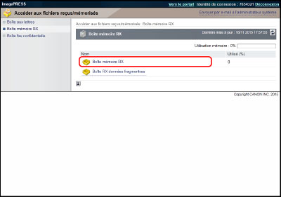 Cliquer sur [Accéder aux fichiers reçus/mémorisés] → [Boîte mémoire RX] → [Boîte mémoire RX].