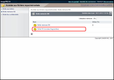 Cliquer sur [Accéder aux fichiers reçus/mémorisés] → [Boîte mémoire RX] → [Boîte RX données fragmentées].