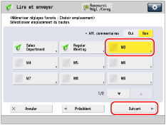 → [Lire et envoyer] →définir le destinataire et les réglages d'envoi à mémoriser.