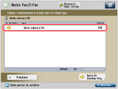 → [Boîte Fax/ I-Fax] → [Boîte mémoire RX].