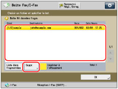 → [Boîte Fax/ I-Fax] → [Boîte mémoire RX].