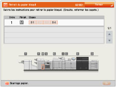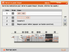 Si des bourrages papier sont signalés à plusieurs emplacements, retirer le papier bloqué dans l'ordre indiqué sur l'afficheur tactile. |