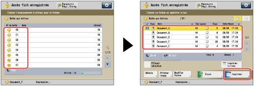 Sélectionner la boîte aux lettres souhaitée → sélectionner le fichier souhaité → appuyer sur [Imprimer].