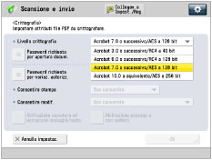 Selezionando [Acrobat 10.0 o equivalente], [Acrobat 10.0 o equivalente/AES a 256 bit] durante la selezione del livello di crittografia viene visualizzato.