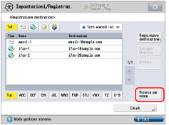Premere [Impostazione destinazione] → [Registrazione destinazioni].