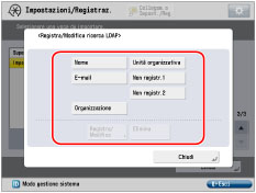 Premere [Impostazione destinazione] → [Registra/Modifica condizioni ricerca LDAP].