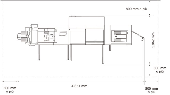 Lasciare spazio sufficiente sui lati della macchina in modo da poter accedere agevolmente alle varie parti.