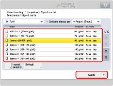 Selezionare lo stesso tipo di carta caricato nella Document Insertion Unit-N1. |