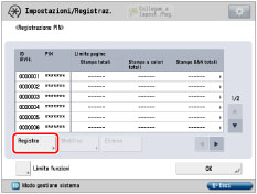 Se si impostano meno di sette cifre, vengono aggiunti zeri all'inizio del numero, in modo da impostare un numero di sette cifre. Tuttavia, quando si esegue l'accesso, gli zeri all'inizio del numero possono essere omessi. Per esempio, anche se si immette <2>, <02> o <002>, il PIN viene impostato su <0000002>. Tuttavia, è possibile eseguire l'accesso immettendo <2>, <02> o <002>.