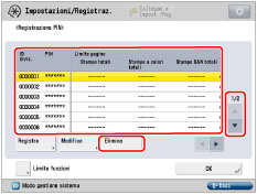 Premere [Impostazioni gestione] → [Gestione utenti] → [Gestione ID divisione].