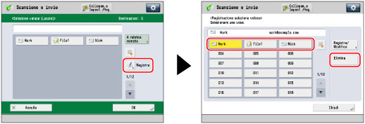 Le destinazioni registrate nei pulsanti di selezione veloce vengono anche visualizzate nella Rubrica locale. |