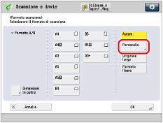 Per selezionare un formato di scansione non standard più piccolo di A3: