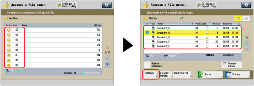 Selezionare la mailbox desiderata → selezionare il file desiderato → premere [Dettagli].