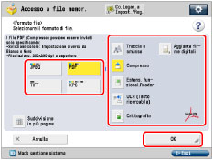 Per maggiori informazioni sui formati dei file, vedere "Impostazione del formato di file". |