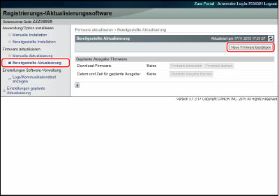 Klicken Sie auf [Bereitgestellte Aktualisierung] → [Neue Firmware bestätigen].