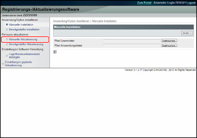 Mithilfe der Funktion "Software speichern/aktualisieren" im Remote UI können Sie die Firmware auf die neueste Version aktualisieren.