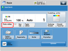 Wenn [Auto (Farbe/Schwarzweiß) verwenden] in [Farbeinstellungen für Kopie wählen] auf 'Aus' gesetzt ist, wird [Auto (Farbe/SW)] nicht angezeigt. (Vgl. Abschnitt "Einschränken der Verwendung der automatischen Farbauswahl".) Wenn [Vollfarbe verwenden] in [Farbeinstellungen für Kopie wählen] auf 'Aus' gesetzt ist, wird [Vollfarbe] nicht angezeigt. (Vgl. Abschnitt "Einschränken der Verwendung von Vollfarbe".) Wenn ein schwarzweißes Dokument im Modus <Vollfarbe>, <Einzelfarbe> oder <Zwei Farben> kopiert wird, wird es als Farbkopie gezählt. |