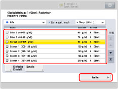 Wählen Sie den Papiertyp, der in der Zuschiesseinheit N1 eingelegt ist. |