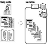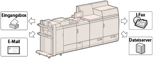 Dieses System bietet Ihnen eine Vielzahl von Scanmöglichkeiten wie z. B. das Einscannen von doppelseitigen Dokumenten und Buchoriginalen sowie die Möglichkeit zum Zusammenführen getrennt gescannter Dokumente in einem Sammeldokument. Sie können außerdem die Belichtung, den Farbmodus und die Dokumentgröße für die einzelnen Originaltypen eingeben, die Sie einscannen. Häufig verwendete Scaneinstellungen können Sie speichern und jederzeit wieder abrufen.