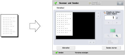 Sie können die Vorschaufunktion verwenden, um eingescannte Bilder zu prüfen und Fehler vor dem Versenden beheben.