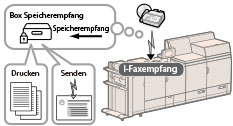 Sie können empfangene I-Faxdokumente in der Box Speicherempfang speichern lassen, anstatt sie auszudrucken. So können Sie Absenderinformationen und Seitenanzahl der einzelnen I-Faxdokumente prüfen, bevor Sie sie drucken oder an einen anderen Empfänger weiterleiten.