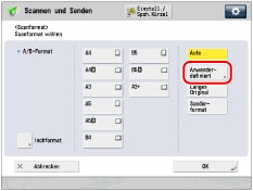 Wenn Sie in einem Sonderscanformat scannen möchten: