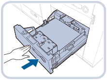 Schieben Sie das Papiermagazin bitte vorsichtig in seine Originalposition zurück, damit Sie sich nicht die Finger klemmen. Sie können sich verletzen. |