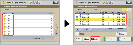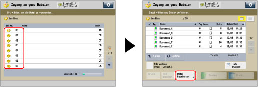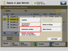 Wählen Sie die gewünschte Mailbox → Wählen Sie die gewünschte Datei → Berühren Sie die Taste [Datei bearbeiten].