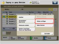 Wenn Sie mehrere Dateien wählen und die Taste [Seiten einfügen] berühren, wird die ausgewählte (markierte) Datei zu der Datei, die eingefügt wird. |